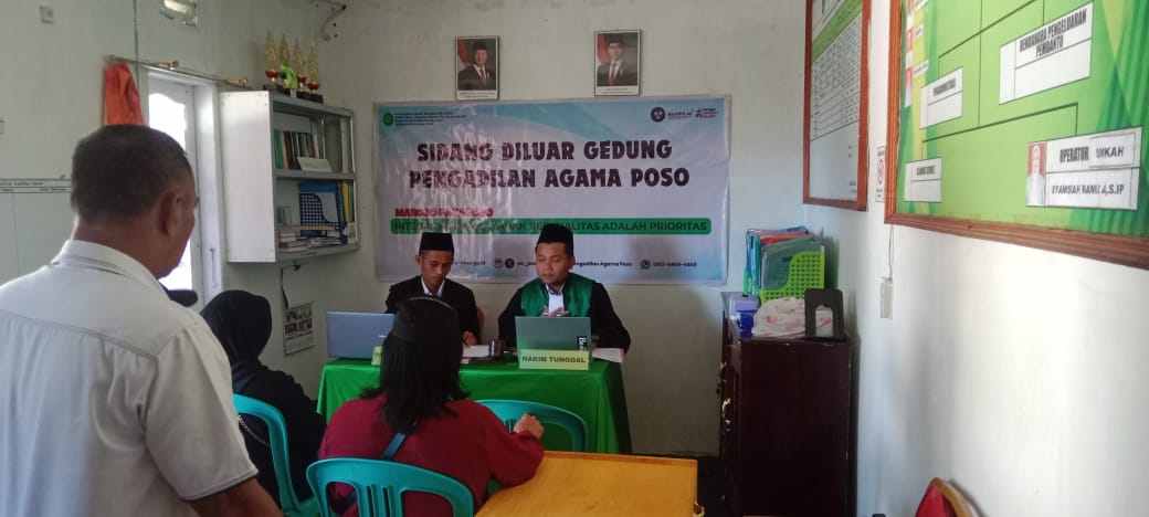 Sidang luar gedung merupakan bagian dari Layanan inovasi ๐ฎ๐_๐ณ๐๐๐๐๐ Pengadilan Agama Poso berupa layanan persidangan dan merupakan wujud nyata dari peningkatan akses terhadap layanan peradilan, khususnya bagi masyarakat yang berdomisili didaerah pelosok jauh dari Kantor Pengadilan Agama Poso.