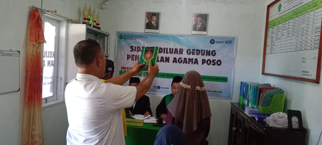 Pengadilan Agama Poso kembali melaksanakan kegiatan sidang luar gedung yang bertempat di Kantor Urusan Agama (KUA) Kecamatan Lore Timur.